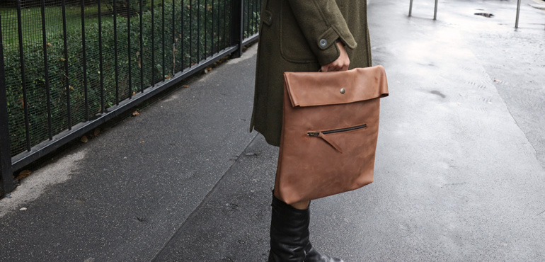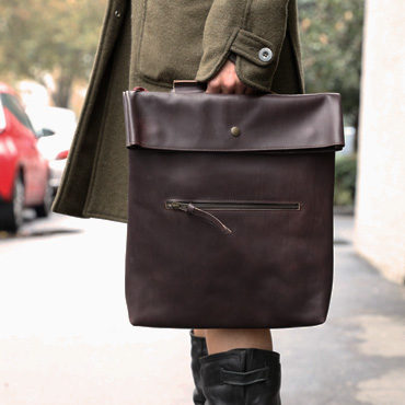 A smart leather bag for your essential, in the day and into the night time. It's a shoulder bag, it’s an hand bag and also a backpack. Contact us.